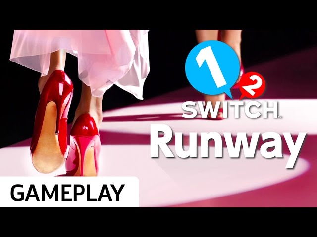 Rob Handlery struts his stuff in 1-2-Switch's mini-game titled Runway. Players must hold the Joy-Con to their hips as they face off in a runway competition.