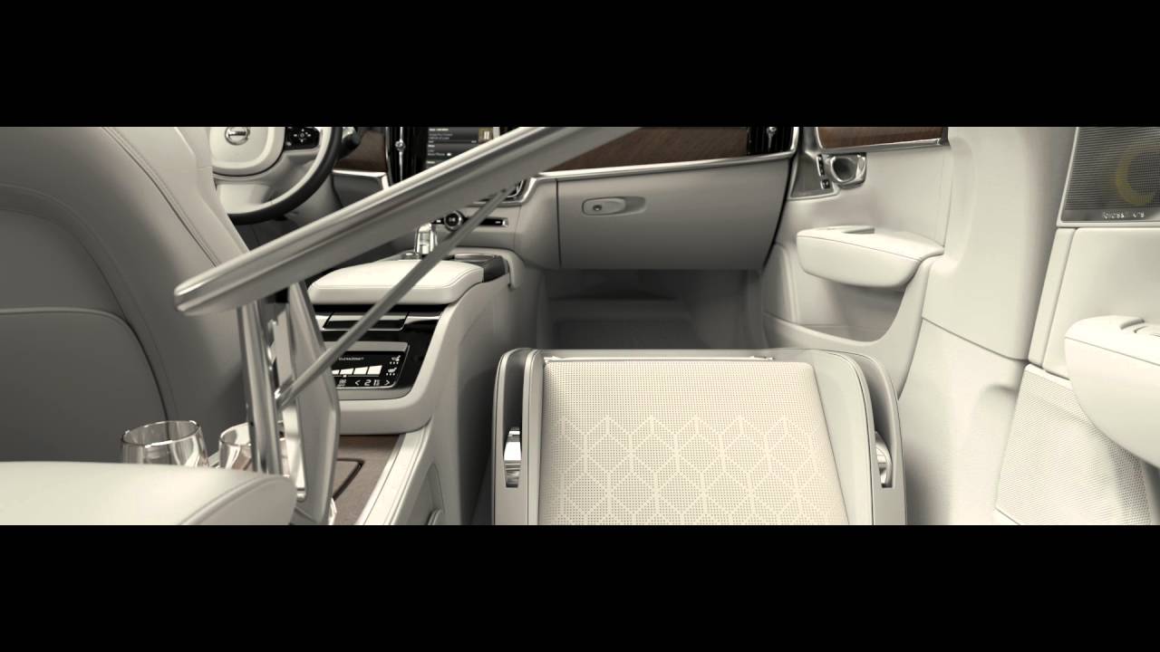 Starting at the rear, the Volvo Cars Design Team added the most comfortable seating and the supreme convenience of a centre control panel for features such as the heated/cooled cup holder, the sound system, massage function and the large multi-media screen. The rear armrest is home to a refrigeration unit and comes complete with two hand-cut crystal glasses from Swedish glassmaker Orrefors.